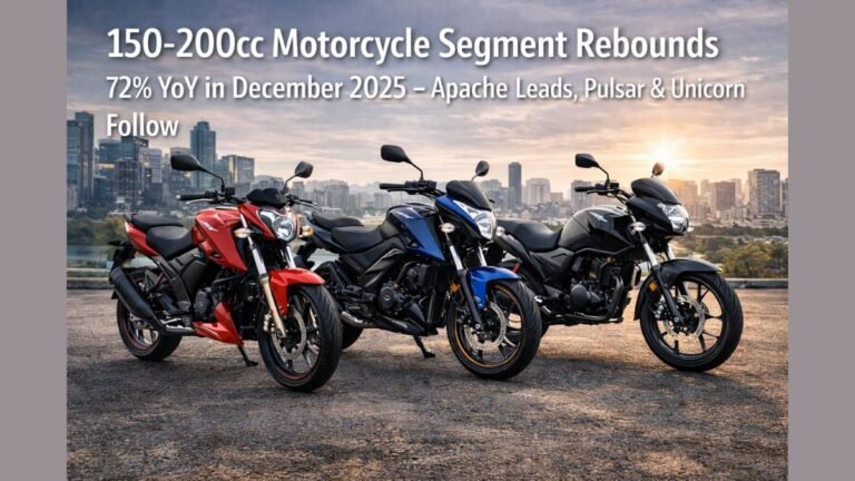 India’s 150-200cc motorcycle market saw strong recovery in December 2025. Sales jumped 72% compared to same month last year. Total …